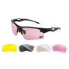 • EASE OF USE: Glasses feature 4 sets of lenses (smoke, clear mirror, vermillion, amber) that can be changed out using the "one-touch" pop-out method that does not require any flexing or bending of the frames to complete