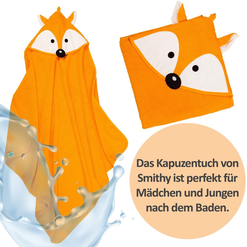 Smithy Hooded Towel Baby Fox with Ears, 100 x 100 cm, Hooded Bath Towel for Newborns, Boys and Girls