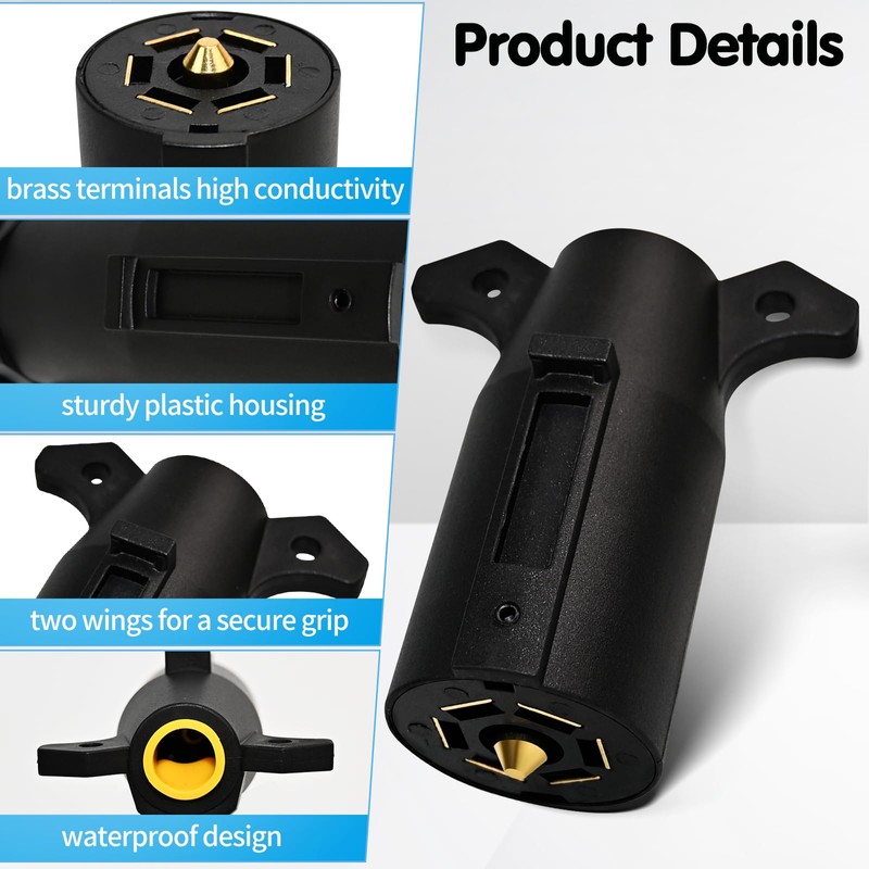 - High Qquality Materials: The 7-pin trailer plug adapter is made of sturdy plastic, which is durable and waterproof, ensuring safe and reliable electrical connections; Built in high-quality brass terminals, with excellent conductivity, not easy to rust and can be used for a long time