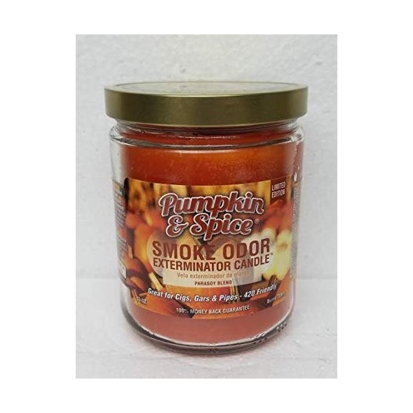 Smoke Odor Exterminator 13 oz Jar Candle, Pumpkin Spice. Total Weight 22 oz include jar & lid with 13 oz wax