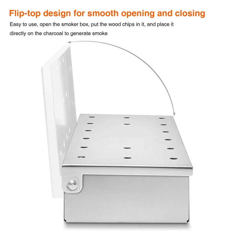 Smoker Box for Gas Grill, Stainless Steel Smoke Box for Charcoal Grill, Wood Chip Smoker Box to add Smoked BBQ Flavor, Flip Open Iron Box, Barbecue Grilling Accessories