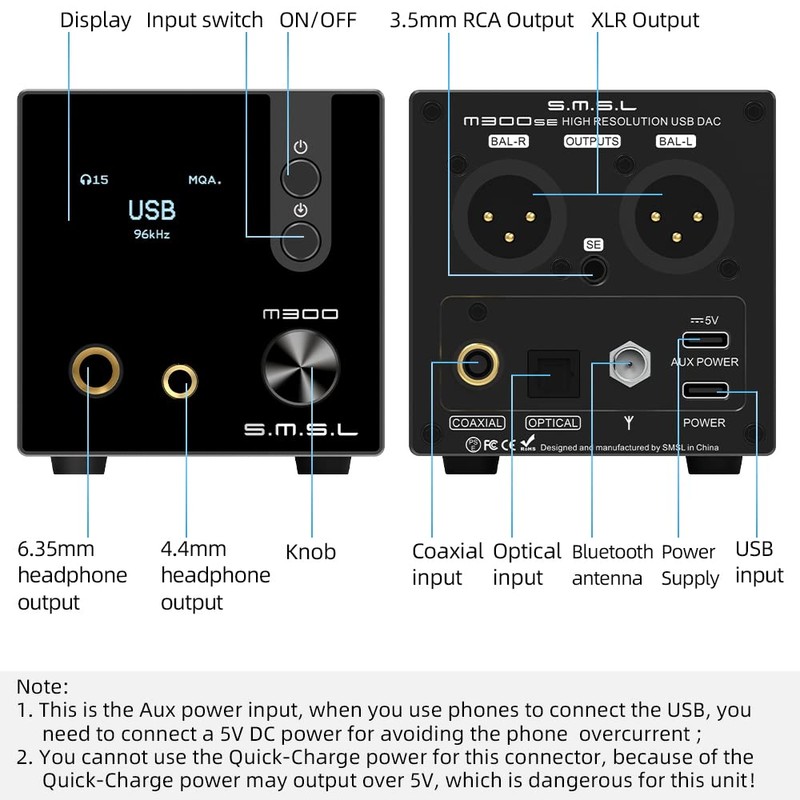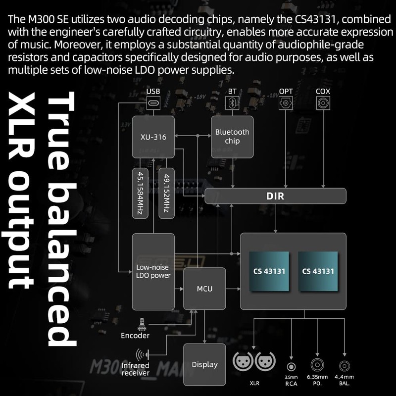 SMSL M300SE(Upgraded),Two CS43131 Chip MQA Audio Decoder,Ear Amplifier,Third Generation XMOS,PCM768kHz/32bit DSD256,DOP64,5 PCM Filters,True Balanced Output XLR,THD+N -117dB