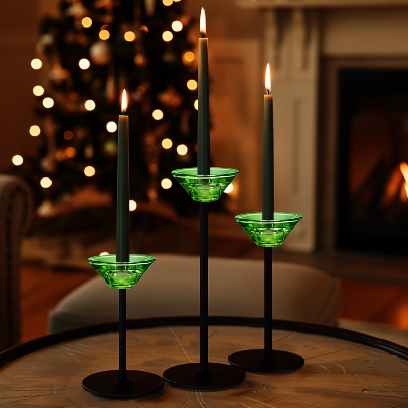 - Soft Glow Through Green Glass: Crafted as green candlestick holders, the tinted glass diffuses candlelight gently, creating a warm, soothing ambiance.