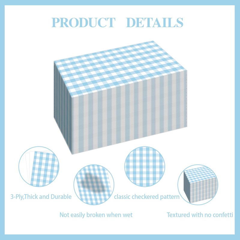 - 100 Sheets of Sufficient Quantity: You will get 100 blue gingham napkins, which not only meet the needs of daily use, but also can easily cope with party gatherings, reduce cleaning and maintenance time, and add intimate convenience to your daily use with your guests