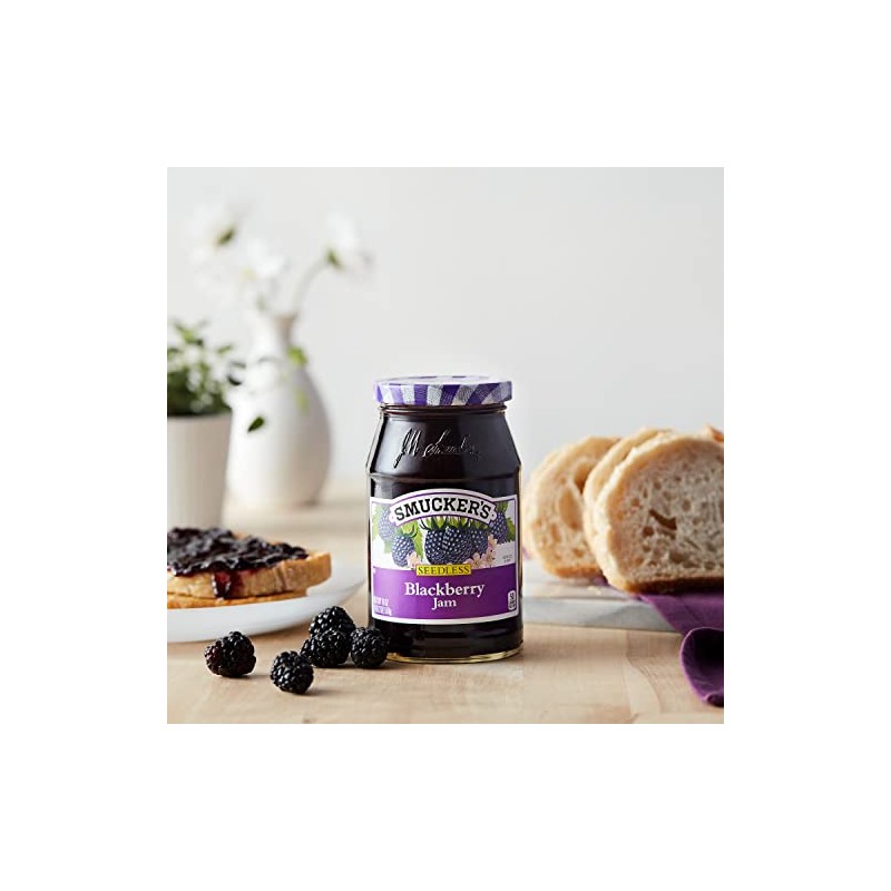 The complex, tangy flavor of Smucker’s Blackberry Jam captures the warm, earthy days of late summer. Picked plump and juicy, our blackberries cook into a rich jam with an ideal spoonable texture. Spread on a scone, add to oatmeal, or use as a sauté base for chicken