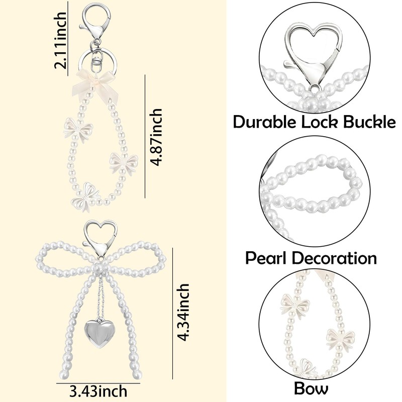 - Bow Pearl Keychains: You will receive 2pcs cute bow pearl key chains for car keys, all carefully designed, and the trendy keychain charms for women can showcase your taste and enhance your temperament