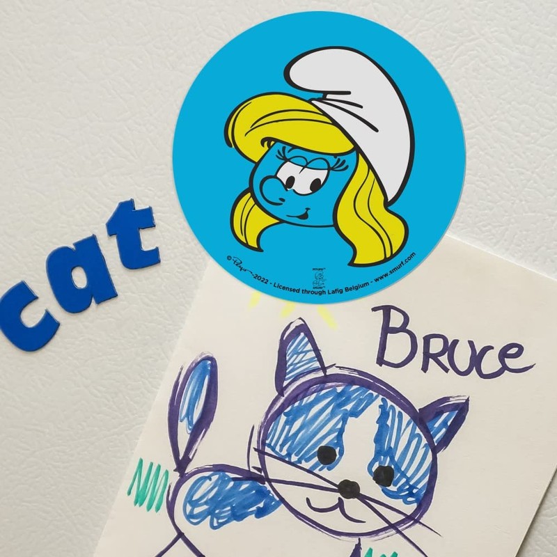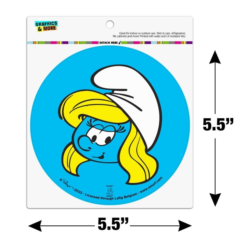 About The Product: Decorate any magnetic surface with this awesome magnet from Graphics and More. This strong, full-sheet, flexible, vinyl magnet is great for indoor and outdoor use. Affixes to most cars, refrigerators, dishwashers, filing cabinets, lockers, washers, dryers and more! Simply snap magnet away from pre-scored packaging to use. The magnet is printed with water and UV resistant inks to resist fading indoors or out. It is approximately 5.5" (14.0cm) in diameter. About The Design: The Smurfs is a Belgian comic franchise centered on a fictional colony of small, blue, humanoid creatures who live in mushroom-shaped houses in the forest. The Smurfs was first created and introduced as a series of comic characters by the Belgian comics artist Peyo(the pen name of Pierre Culliford) in 1958, wherein they were known as Les Schtroumpfs. If you're a fan you'll love this official Smurf product!