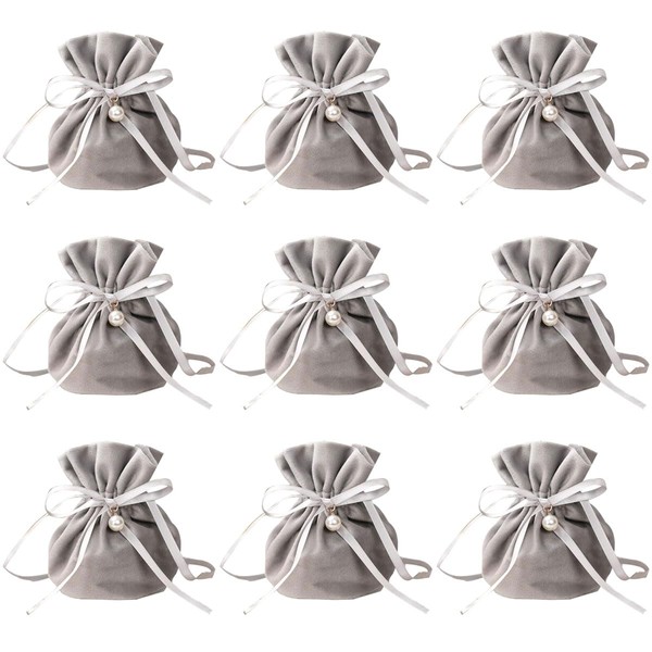 Snadulor 20 PCS Round Bottom Drawstring Velvet Gift Bags Jewelry Pouches with Pearl Bead,for Wedding Favors,Christmas,Party Favors,Birthday,Grey