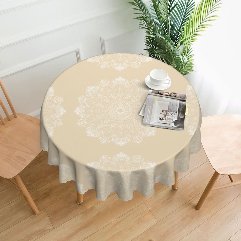 - 【Unique Lace Pattern Design More Delicate】The table cloth round uses beige as the main colour, the colour can be well integrated into various home decoration styles. Our round table cloth also has a round lace pattern printed on it, which is not as monotonous as solid colours,more luxurious.And the edges of the tablecloths are designed with lace shape, which adds a touch of romance and sophistication to your dining table, and brings you a pleasant dining experience.