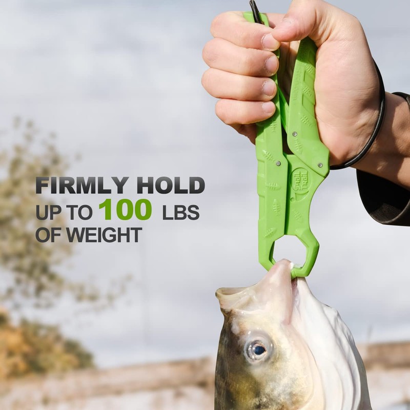 SNAIL TRAIL 7.5''/9'' Floating Fish Gripper, Fishing Grabber, Catfish Mouth Pliers, Caught Bass Holder, Digital Scale Hook Clamp, Saltwater Lip Grip Tool with Lanyard, Gifts for Men, Green