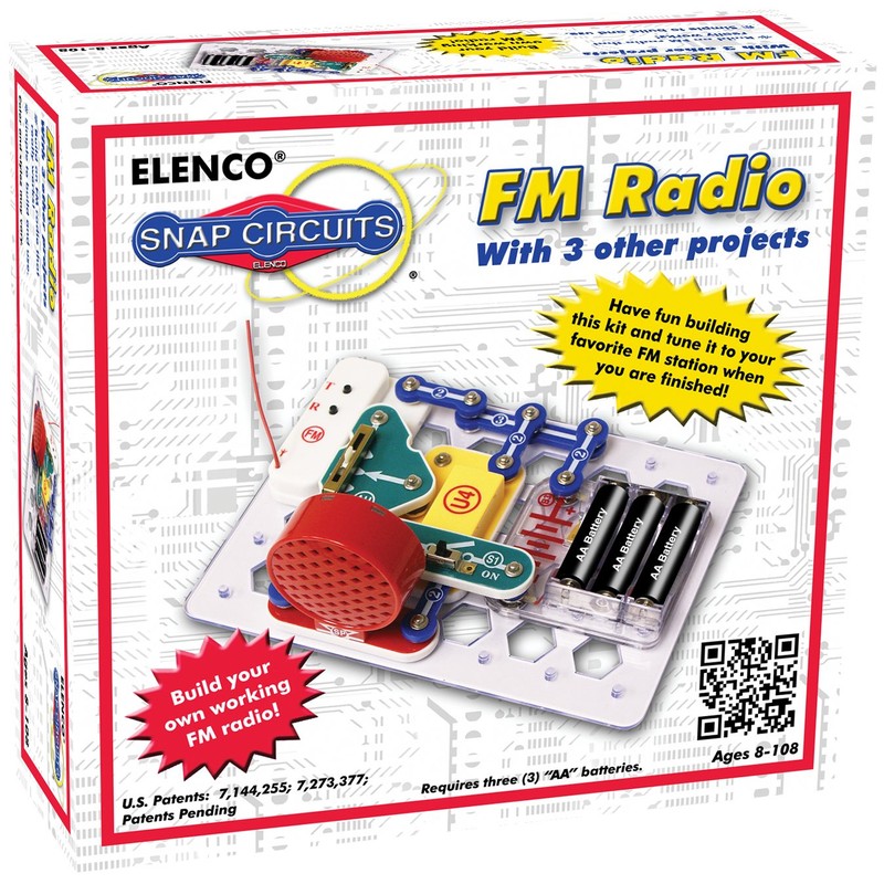 Elenco's Snap Circuits makes learning electronics easy and fun! Just follow the colorful pictures in our manual and build exciting projects such as AM radios, burglar alarms, doorbells and much more! You can even play electronic games with your friends. All parts are mounted on plastic modules and snap together with ease. Enjoy hours of educational fun while learning about electronics. No tools required. Uses "AA" batteries. Not included.
