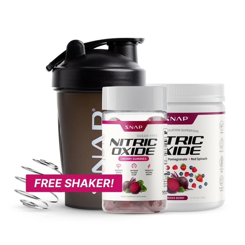 Snap Supplements - Berry Flavor Nitric Oxide Beets + Cherry Flavor Nitric Oxide Gummies + Free Shaker (14oz) - Natural Supplement Bundle