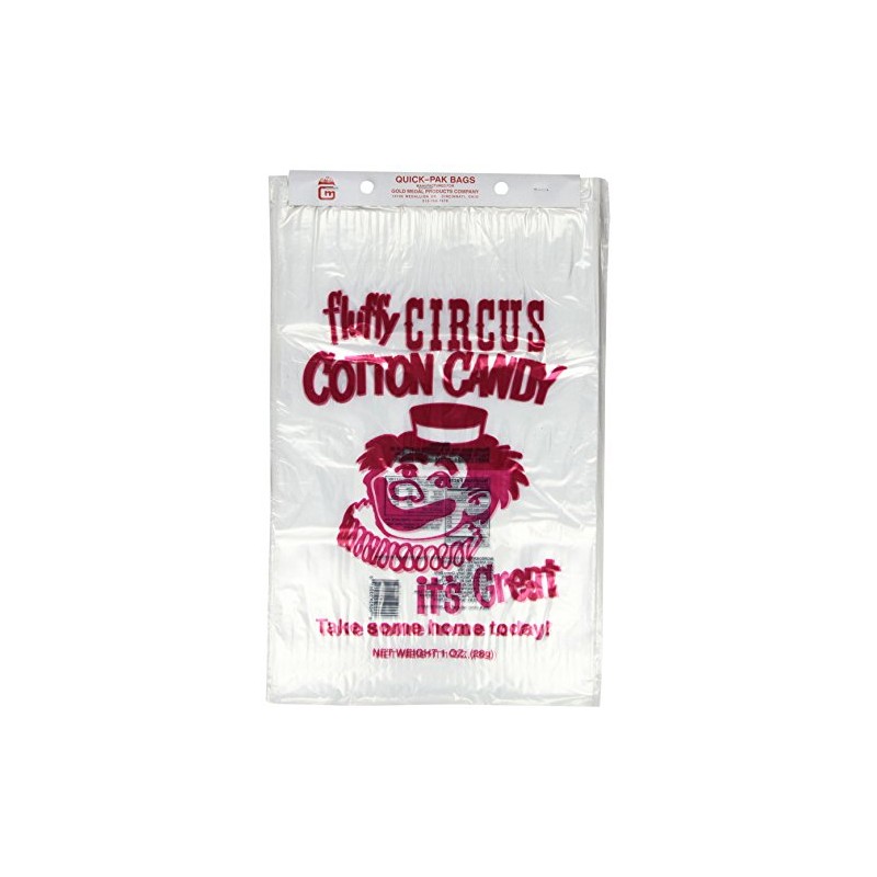 Sell floss in bags for additional profits. Each bag has a printed red clown design and is header packed 1,000 per case. Actual bag dimensions are 12 inches wide x 18 inches tall.