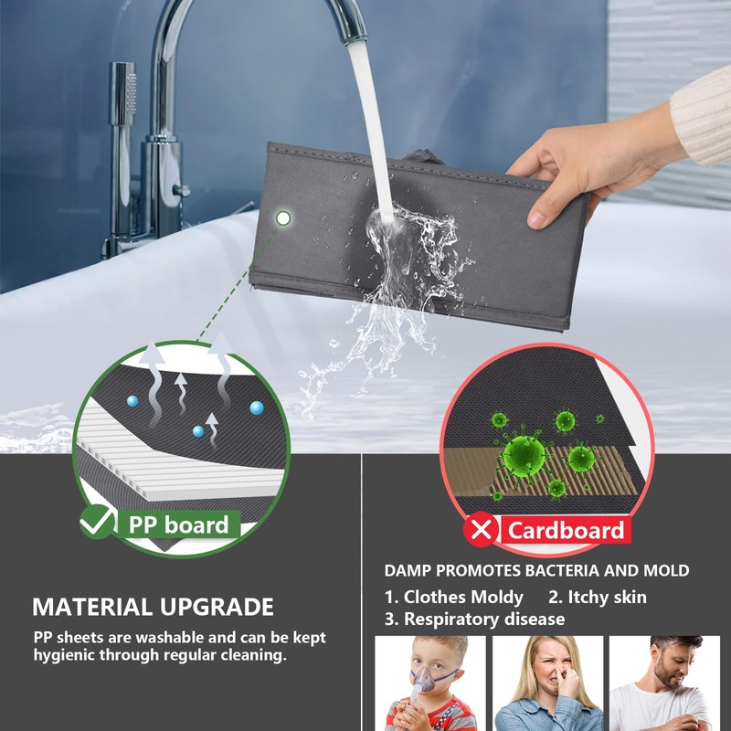 - ECO FRIENDLY & REUSABLE These closet organizers are made of high quality thickened non-woven fabrics, which are well made and thick and not easy to damage. Delicate double stitching, durable and not easy to tear, soft and breathable, non-irritating. The diagonal zipper design increases stability and does not lose colour even after repeated washing. offers you more comfort. Makes the storage box of the drawer lighter and more durable