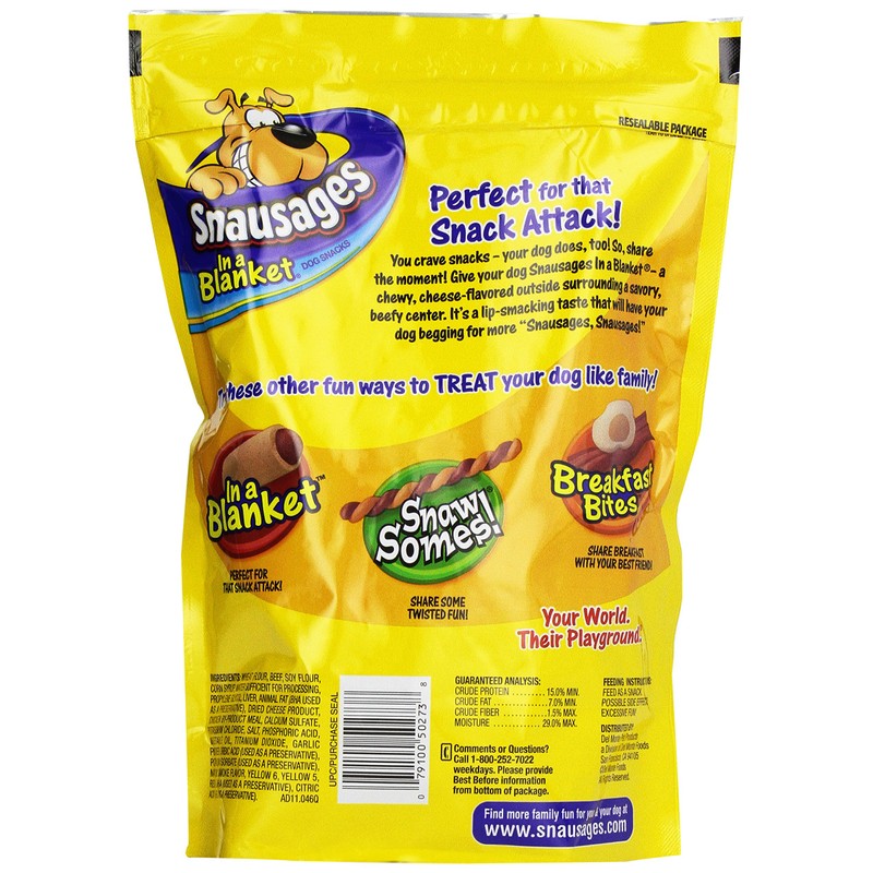 Dogs love Snausages In a Blanket Beef and Cheese Flavor Dog Snacks. Our scientists labored for months to improve our already golden recipe. Then it dawned on us: let's wrap some cheese flavor in that delicious hug of perfection. Forever. Or until your dog eats all of them.