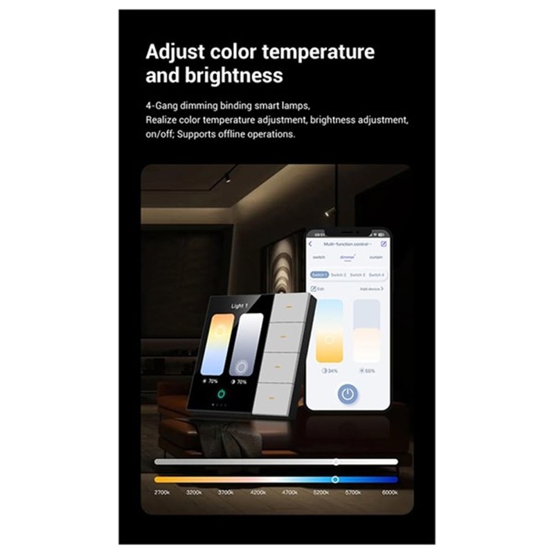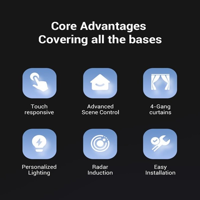- ✅ [4-in-1 Multifunctional Hub] 4 switches (500W per circuit) + 4 curtain controls + 4 dimming channels + 8 scene modes - manage lights, appliances, motorized curtains, and smart dimmers simultaneously.