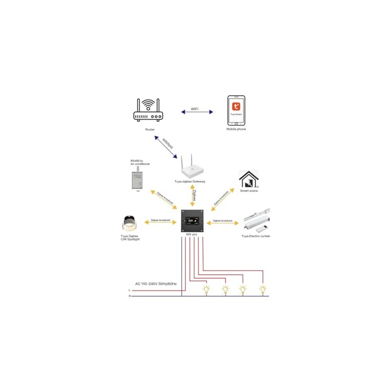 Snblzhef Tuya Smart Multifunctional Central Control Panel ZigBee Dimming Switch H Home Automation Wireless Lighting Control System Black