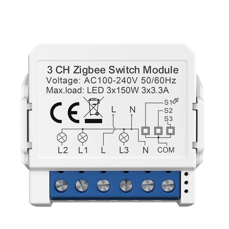 Snblzhef Tuya Zigbee Zero Fire Smart Switch Module Two-Way Control Support Voice Control DIY Home Automation 3 Gang