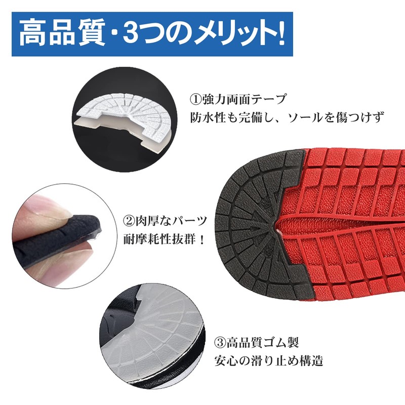 - (Easy to use with rubber and double-sided tape with excellent abrasion resistance) The repair material for the soles is made of rubber material, which is soft and flexible. Special rubber material, wear-resisting, anti-skid, waterproof, anti-fouling, high viscosity layer without residue, waterproof, high viscosity, not hurt the sole. It is abrasion resistant and durable, so it can be used for a long time. & These heel repair patches are pre-pasted for easy installation. 1. Clean the soles thoroughly with a cloth or tissue. 2. Apply the sole guard with hot air from the dryer. 3. Adjust the position and press down for 2-3 minutes to complete. (Use the adhesive to dry in the shade for more than 1 day and you're done. )