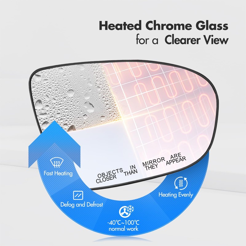 The glass adopts chrome plating technology: providing a clearer view, with electric heating function, uniformly heating for defogging and defrosting