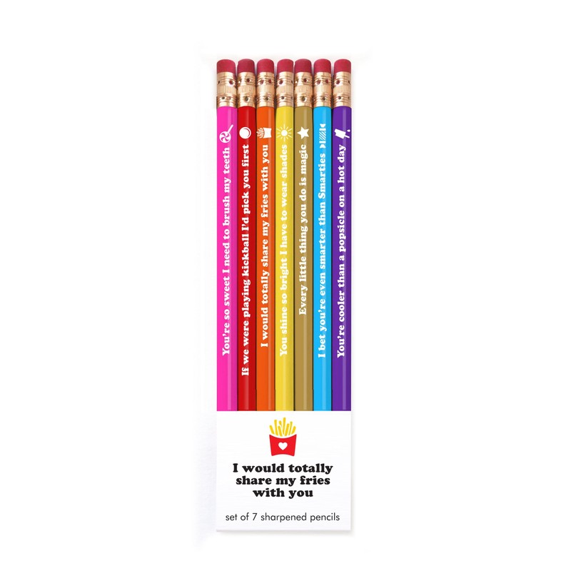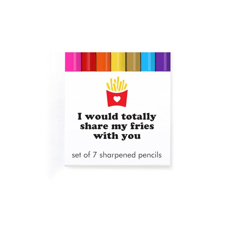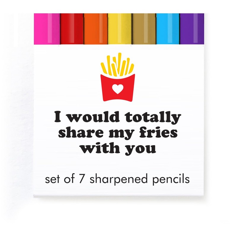 - Fun, Food-Themed Design: These pencils feature playful designs related to fries, possibly with humorous or cute phrases like "Share My Fries" that appeal to food lovers.