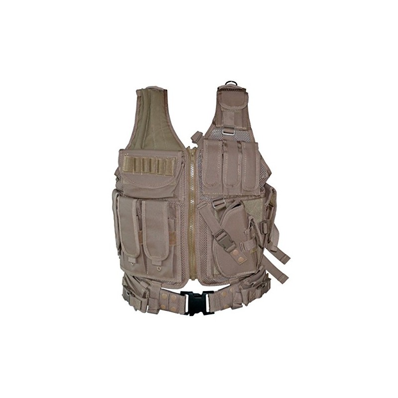 Sniper Cross Draw Tactical Vest Tan, 600D Polyster Oxford