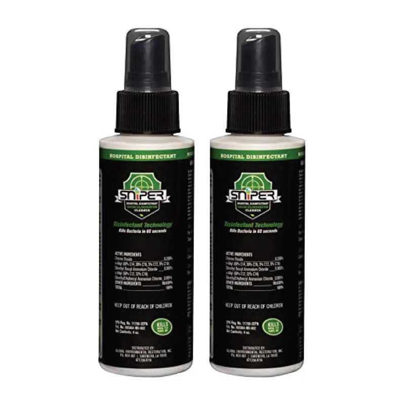SNiPER Hospital Disinfectant, Odor Eliminator & All-Purpose Cleaner, 4 Ounce Spray, 2-Pack