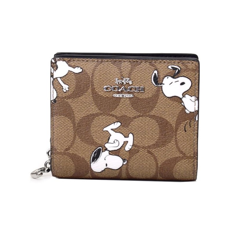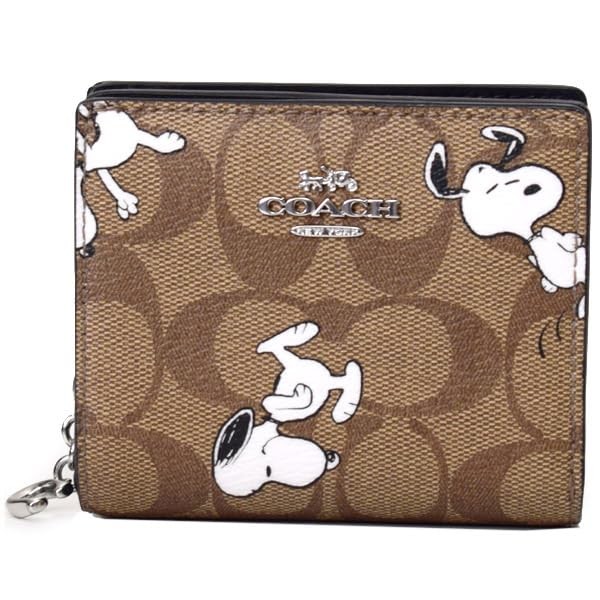 Snoopy Folding Mini Wallet Compact Snap Wallet Signature Canvas with Outlet, Khaki