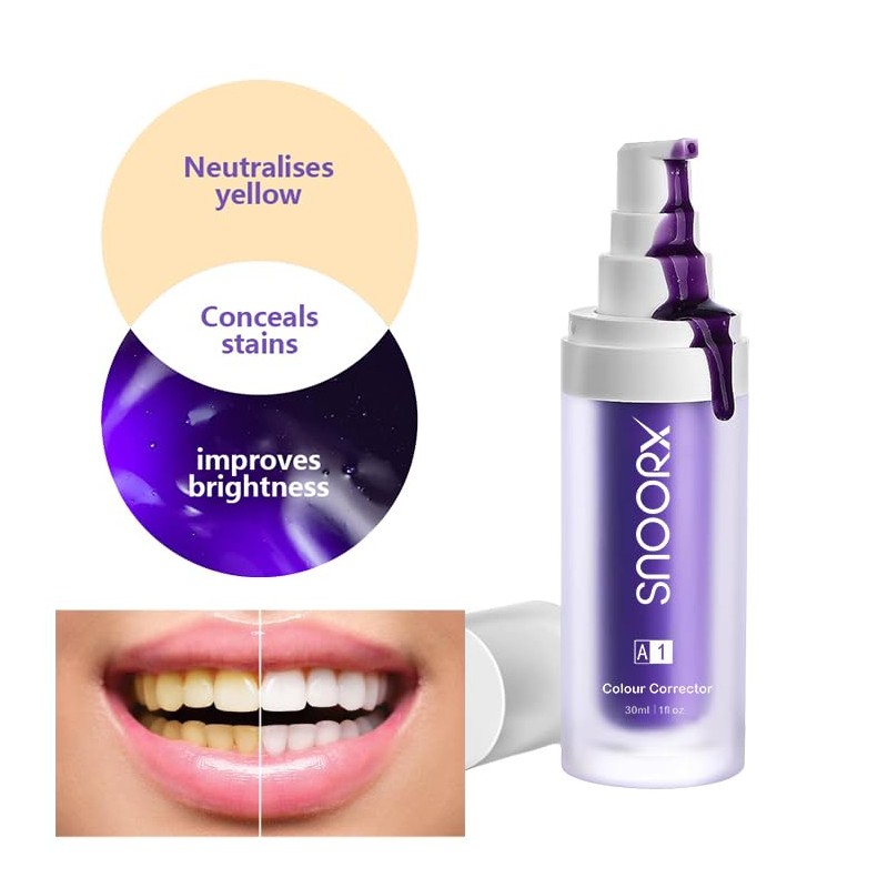 SNOORX 30ml Colour Corrector Teeth Whitening Toothpaste - Purple, UK Teeth Shade A1