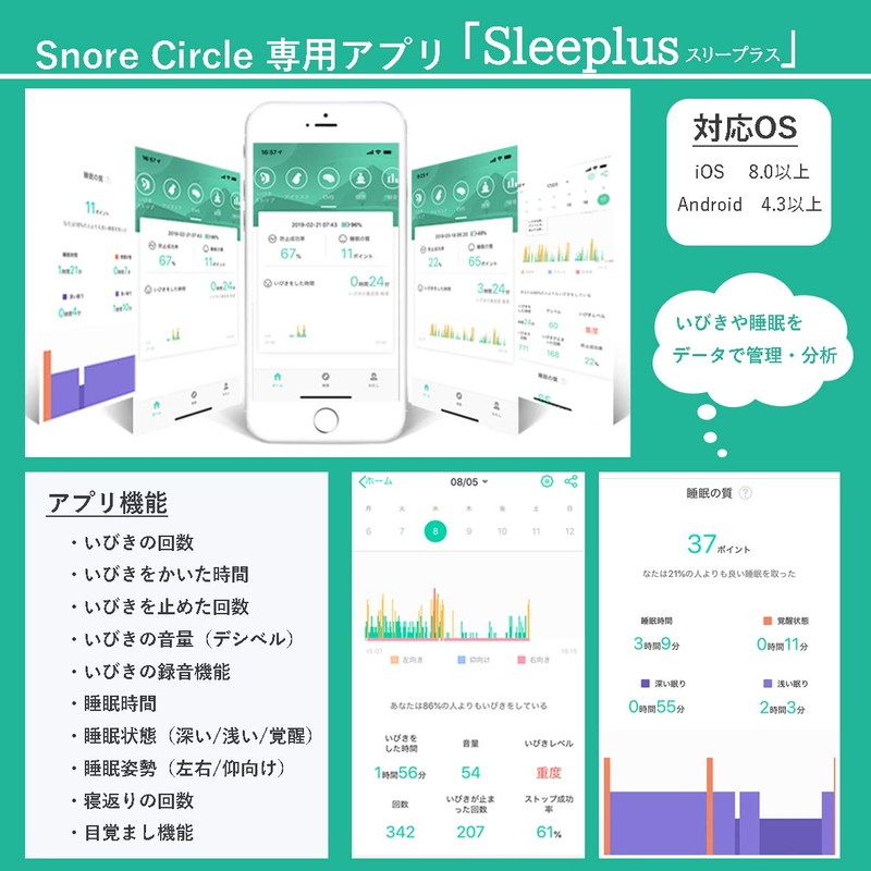 - Record Snoring Sleep: The snow circle has a sensor that can record your sleep status. You can measure the number of snoring times and stopped and volume while you sleep. You can also record detailed information of your sleeping position (side and back, etc.) while you sleep