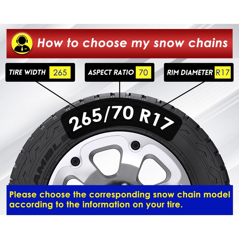 - Durable & Reliable - Crafted from thick alloy manganese steel with a chain diameter up to 4.5mm and a chain tread height of 16mm, our snow chains deliver exceptional traction and grip on snow, mud, sand, and ice, ensuring your safety.
