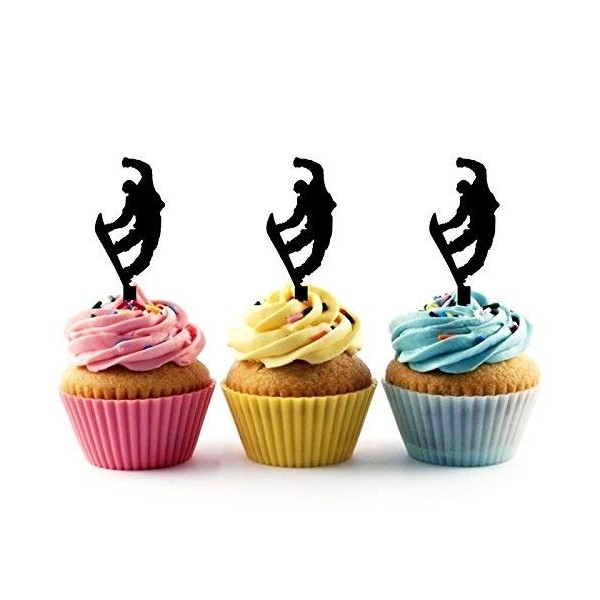 Snowboard Jumper Snowboarding Jump Silhouette Acrylic Cupcake Toppers 12 pcs
