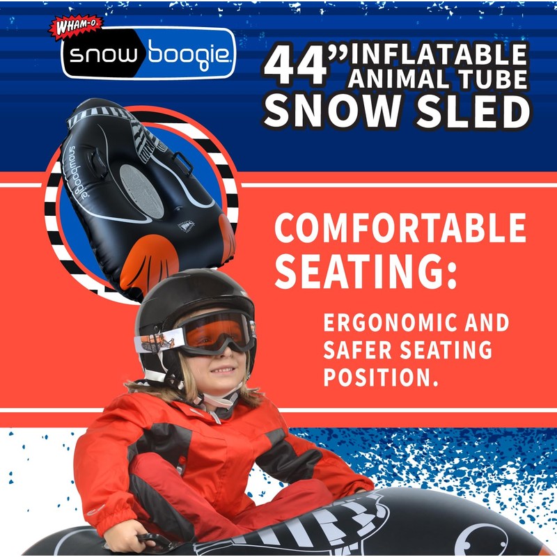 - 44" INFLATABLE ANIMAL TUBE SLED: Can be quickly and effortlessly inflated, enabling you to spend more time having fun on the slopes and less time setting up.