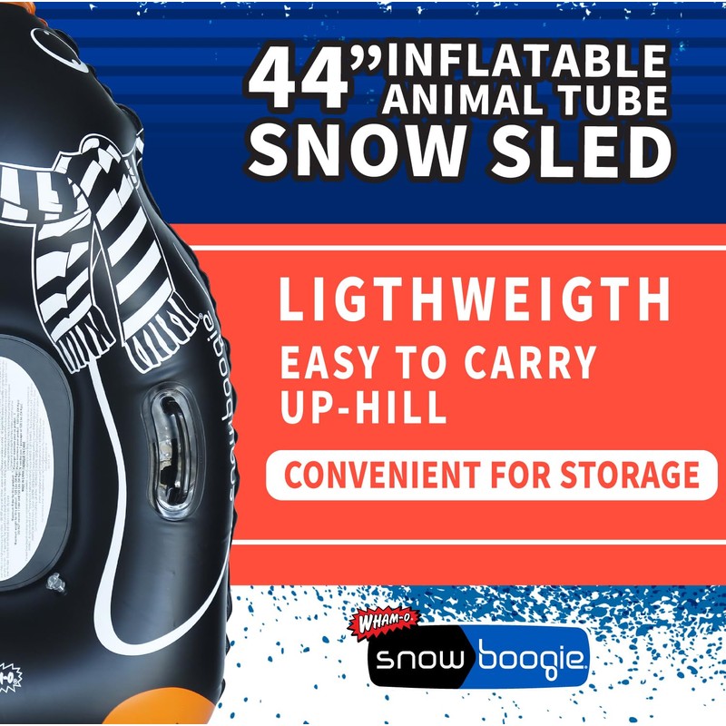 Snowboogie Animal Tube 44" | Single Rider Snow Sleds | Inflatable Sled with Soft Handles | Slick Bottom for Speed & Control | Snow Sledding for Adults & Children (Penguin)