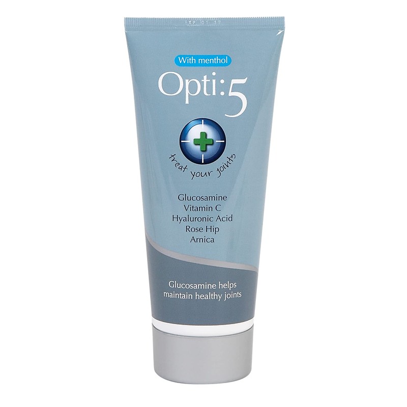 - Opti:5 is a drug free joint massage gel. It contains N-acetyl Glucosamine, a highly absorbable form of Glucosamine, to help maintain healthy joints. It also contains Menthol for a soothing effect and Vitamin C, Hyaluronic Acid, Arnica and Rose Hip.
