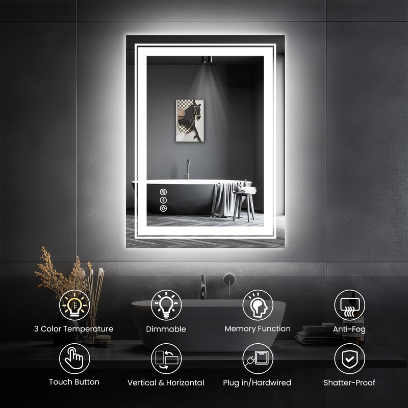 - Easy To Install: The wall illuminated bathroom mirror is easy to install, just screw the frame to the wall and hang the mirror on the frame.LED mirror can be powered by hardwire or plug (can be hung vertically or horizontally)