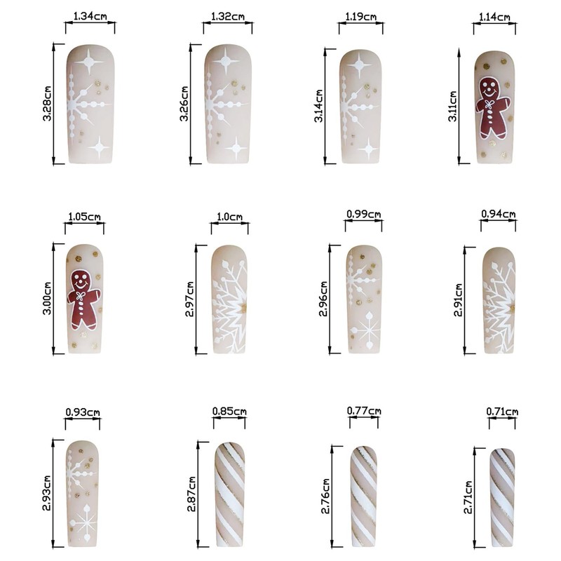 24Pcs Press on Nails Long with Snowflake Snowman and Stripe Design French Acrylic Nails for Women Christmas Manicure Decorations.