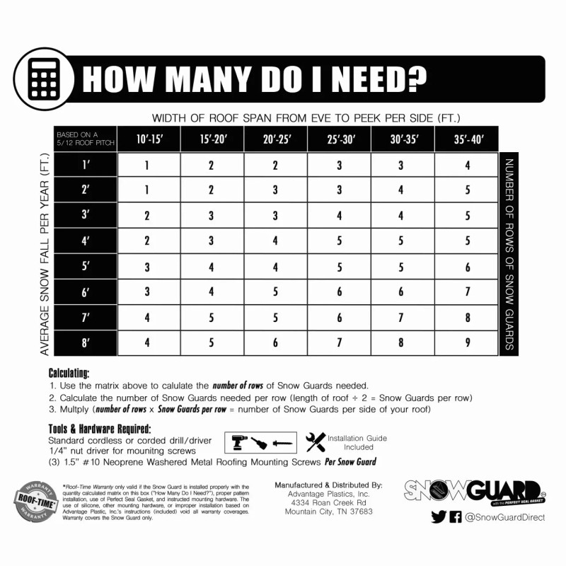 number of Snow Guards™ you need for your roof, see the "How Many Do I