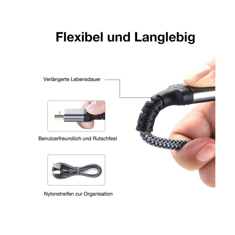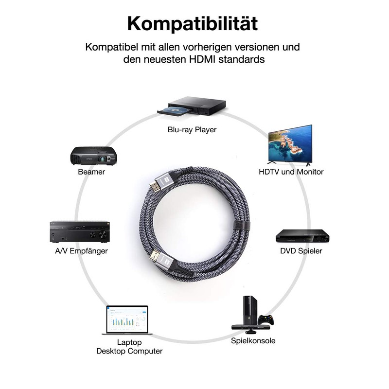 • 4K @ 60Hz HDMI cable Ultra HD and 3D: The innovatively improved 4K HDMI cable allows unrestricted video in 4K (UHD), 1440p (QHD) and 1080p (HD). A resolution of up to 4k@60Hz (3840x2160@60Hz), four times 1080p and HDR support, clearer image quality and Dolby Vision are no problem. Enjoy unparalleled video quality, crisp and precise sound as well as a buffer-free Ethernet connection with this UHD 4K HDMI cable.