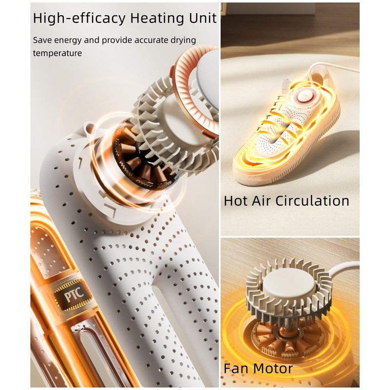 - Overheating Protection: The precise temperature control system maintains a constant drying temperature of 131°F, effectively drying your favorite boots and sneakers without causing damage to glue.