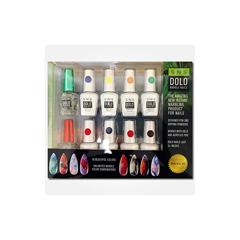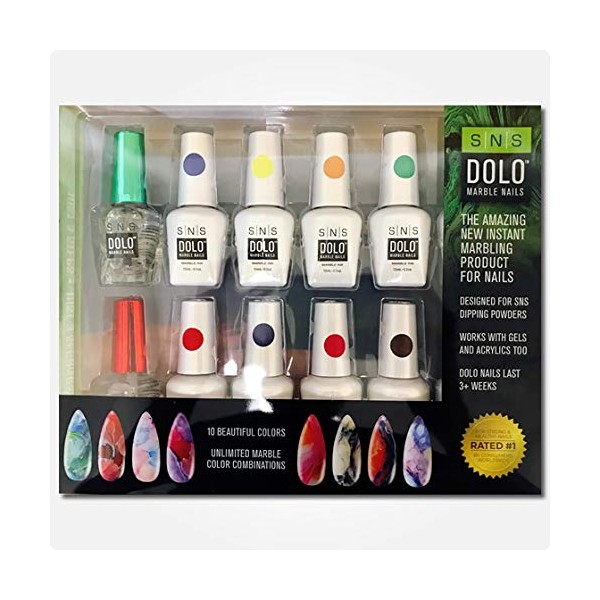 Create one of a kind works of nail art inspired by the timeless look of marble Includes 10 captivating colors plus Dolo Base and Dolo Top Coat Surprisingly easy to learn this modern nail art technique Endless color combinations to give your clients infinite choices