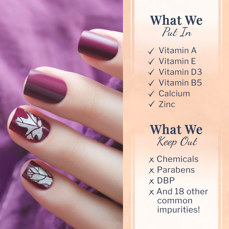 - 10 Free: Our dip powders and adhesives are formulated to be 10 Free, meaning free from a variety of harsh chemicals. We are also hypo-allergenic and enhanced with ingredients to help support nail growth