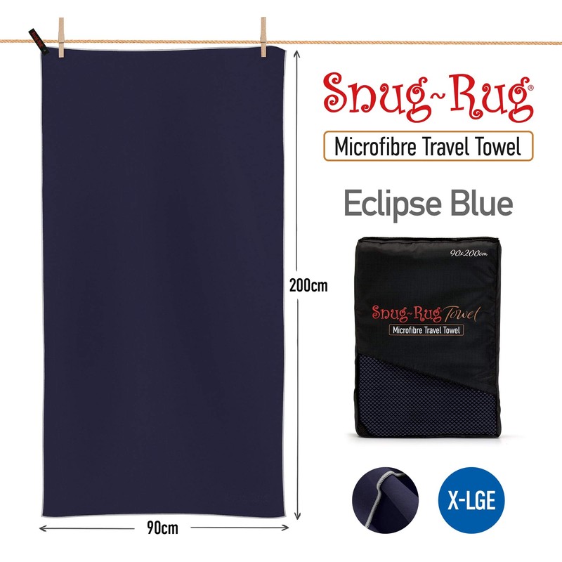 Snug Rug Microfibre Towel Extra Large XL 200 x 90cm – Super Absorbent - Quick Drying - Lightweight Compact Travel - Antibacterial Swimming Sports Travel Sand Proof Beach Towels - Eclipse Blue