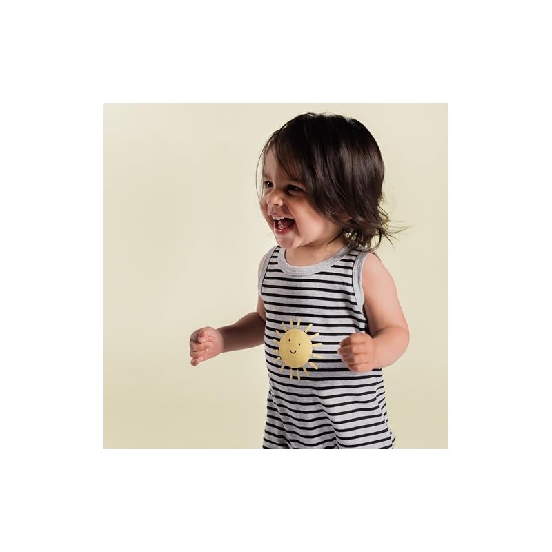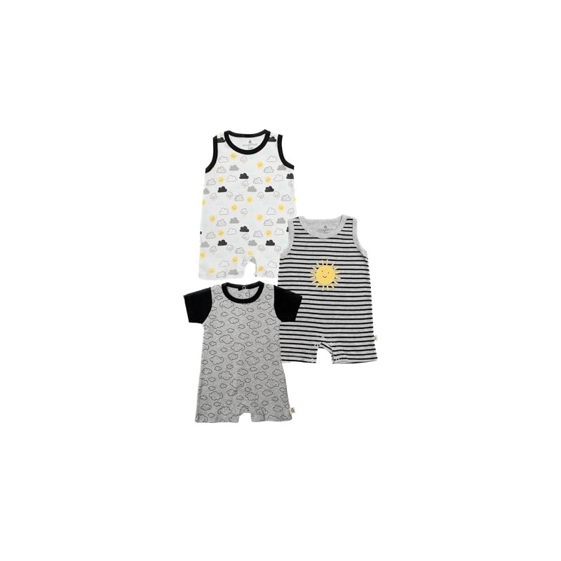 - Adorable Designs: Each romper in the collection features delightful designs, including playful clouds and classic stripes with a cheerful sun motif, adding a touch of whimsy to your baby's wardrobe.