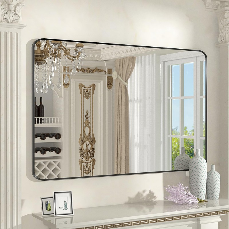 - Copper-free Wall Mirror for Home: This metal rectangle shape with a rounded corner large mirror meets the decor needs of industry, rustic and modern style of bathroom, bedroom vanity, entryway, farmhouse, hotel, or salon.