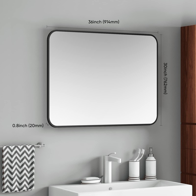 SNUGACE Black Vanity Mirror for Bathroom, Rectangle Frame Bathroom Wall Mounted Mirrors, 30x36 Inch, Black