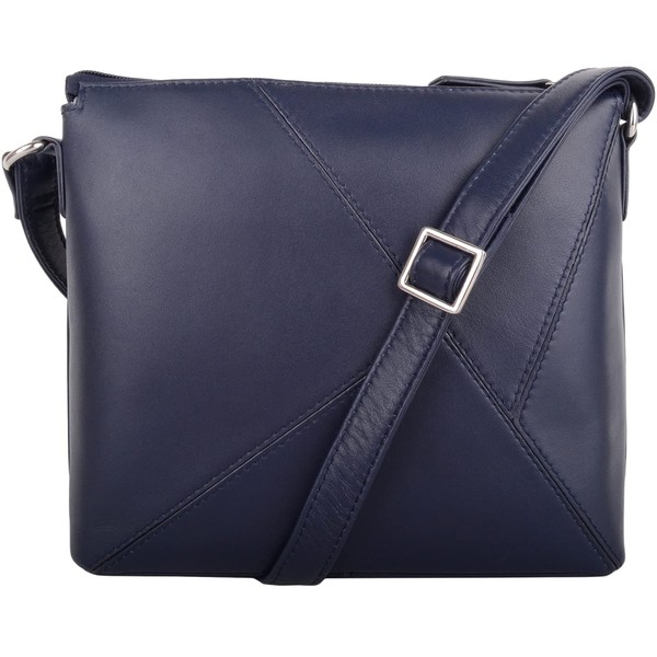 SNUGRUGS Ladies Soft Genuine Leather Triangular Insert Shoulder Bag, navy