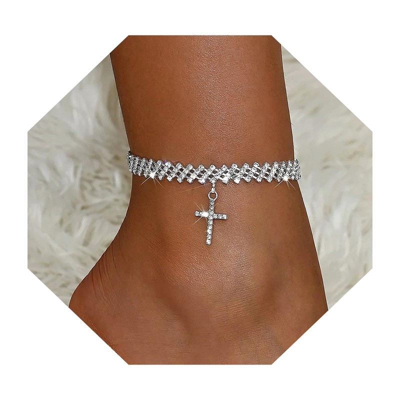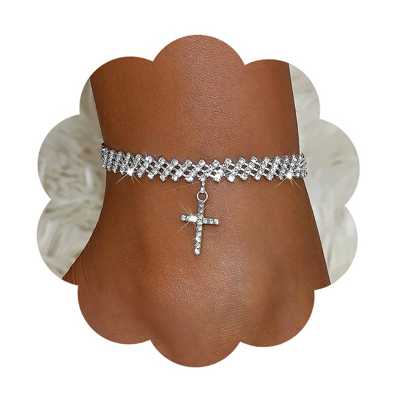 Snuhlzvm Shining Cross Zircon Anklet, Elegant Religious Foot Accessory, High-Quality Craftsmanship That Shines For a Long Time, Versatile For Daily Use, a Trendy And Fashionable Item For Women