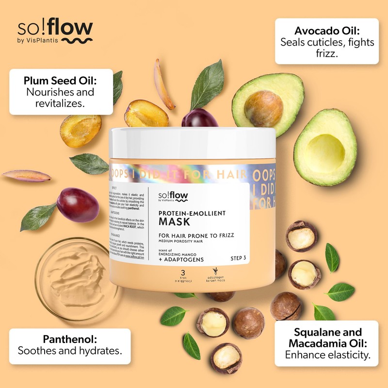 - Nourishes and restores medium porosity hair: The So!Flow Medium Porosity Hair Mask is designed to nourish and restore weakened hair. It helps hair regain its shine, suppleness and softness. Plum seed oil provides nutrients, avocado oil seals the cuticle and macadamia oil and squalane contribute to the elasticity and a healthy appearance of the hair.