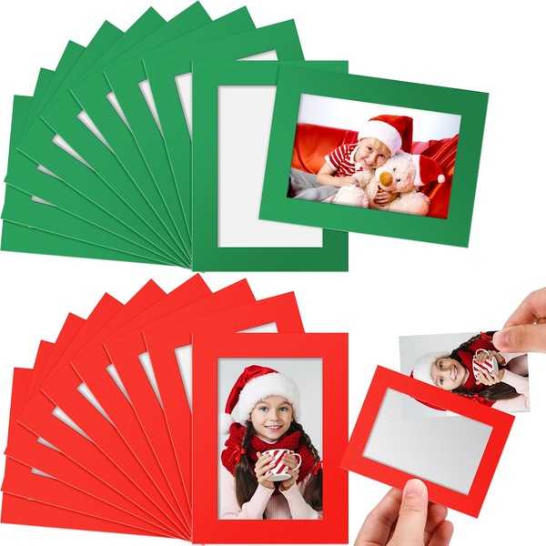 Soaoo 60 Pcs Magnetic Picture Frames Wallet Size Picture Frames 2.5 x 3.5 Inches Reusable Magnetic Photo Sleeves Magnetic Picture Holder for Refrigerator Cabinet Home Office Classroom (Red, Green)